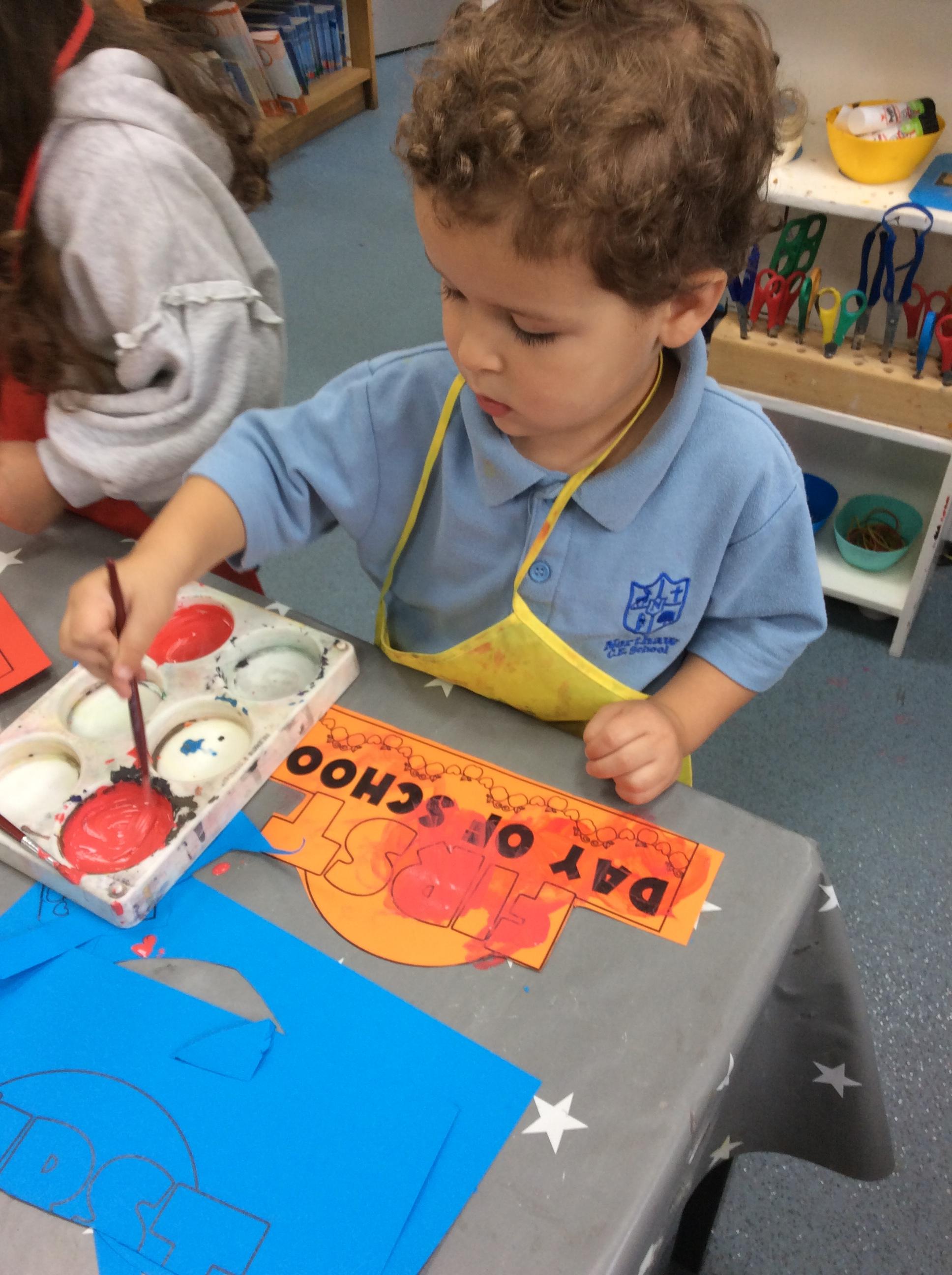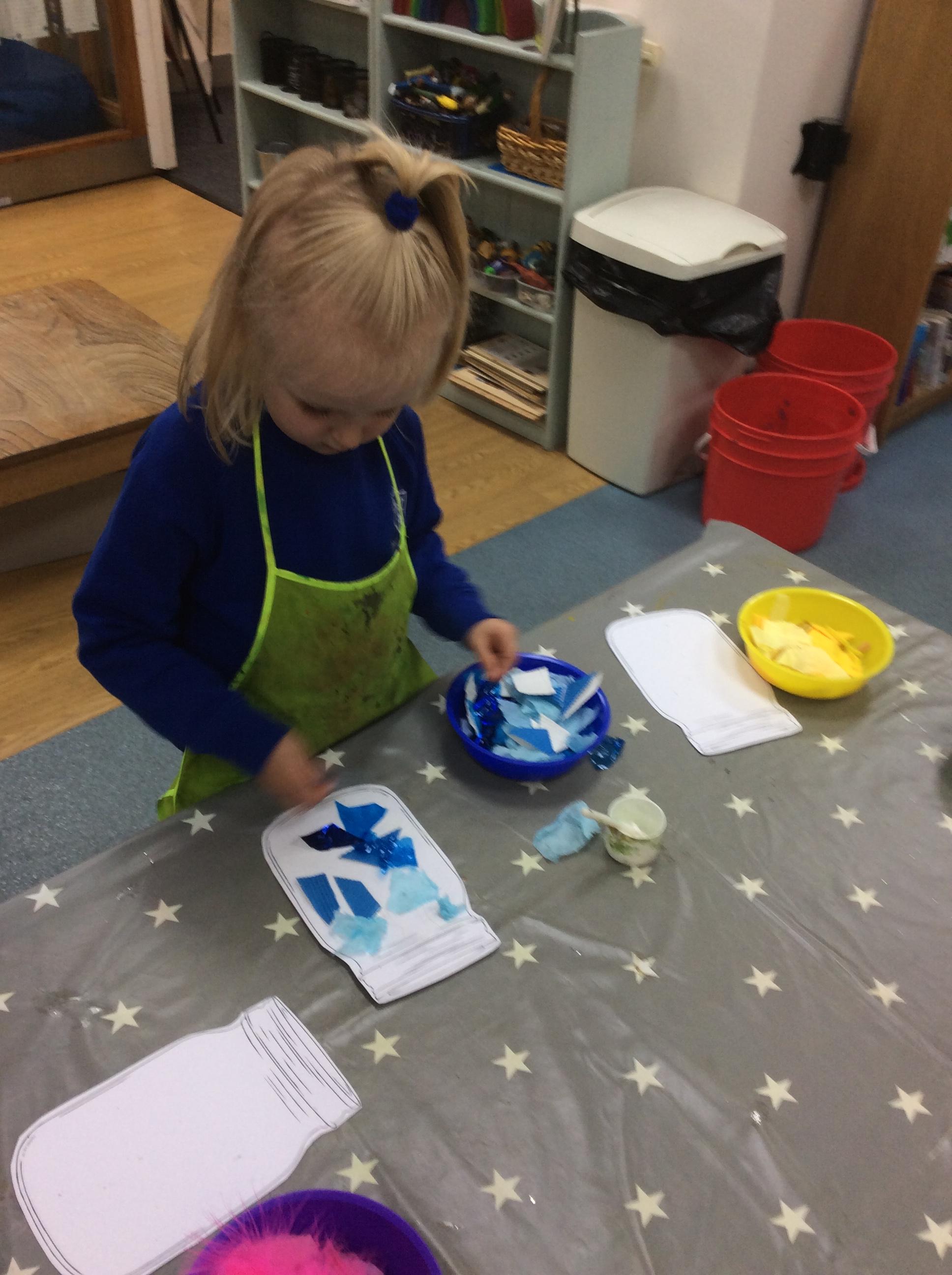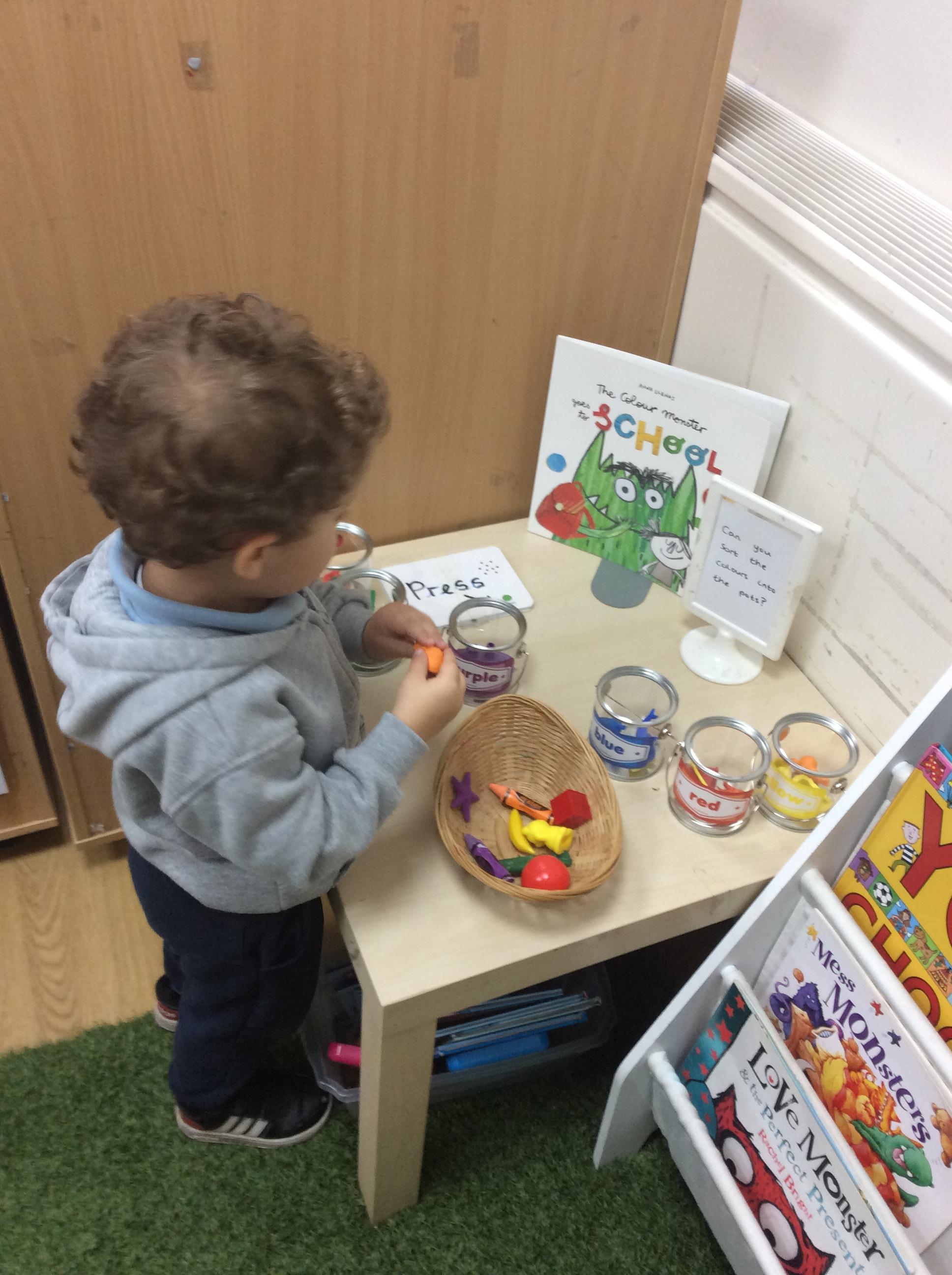 This week we have been learning about the Colour Monster. We have talked about our feeling and emotions. We have taken part in a range of activities to do with this book. On Wednesday we made pitta pizzas as we agreed this made us happy. We also made feeling bottles which we can take home and shake when we are feeling angry and it can help to calm us down. Also this week we watched a science experiment where all the skittles got mixed up, just like the colour monster book. Another busy week in Acorns.