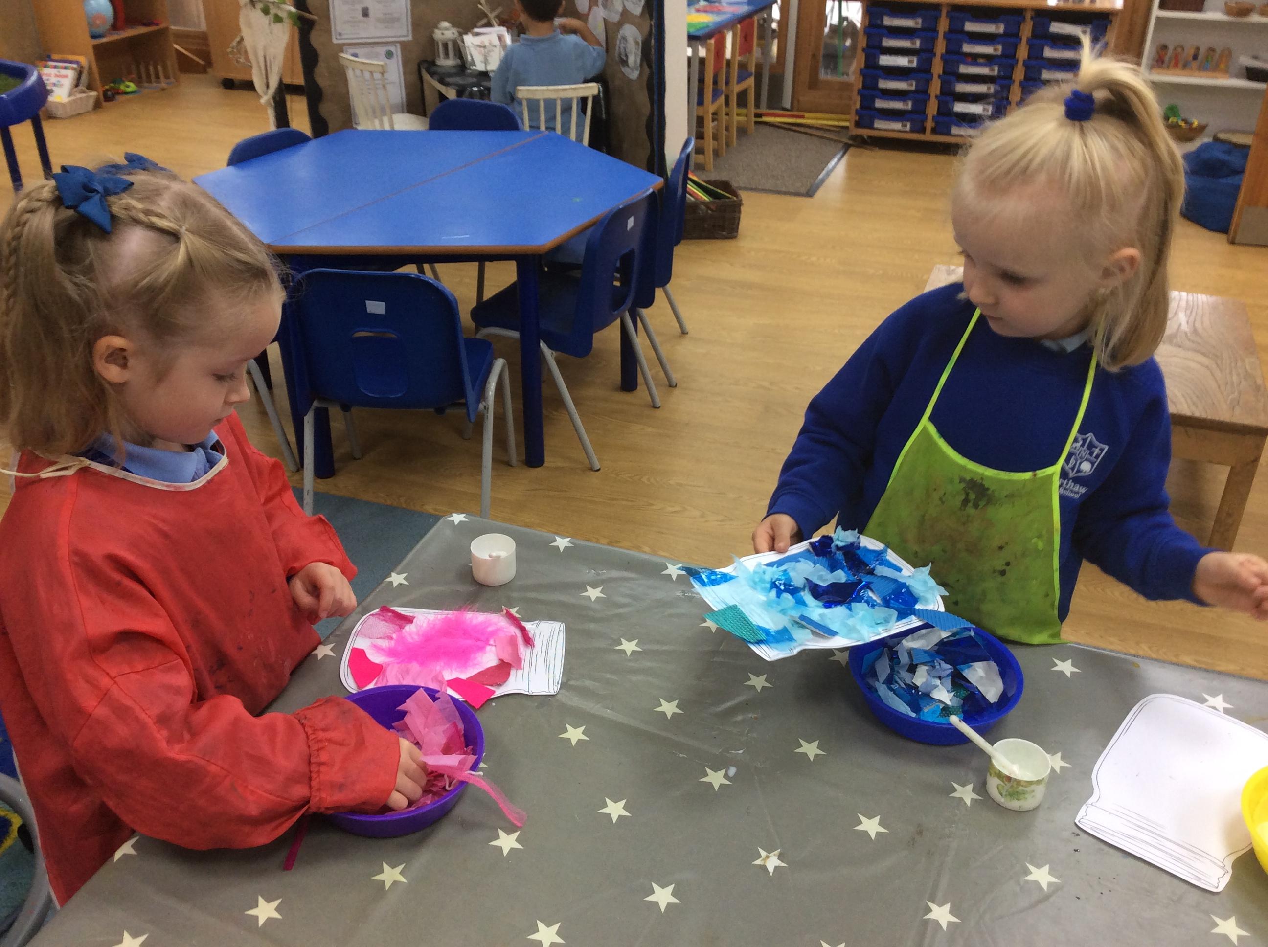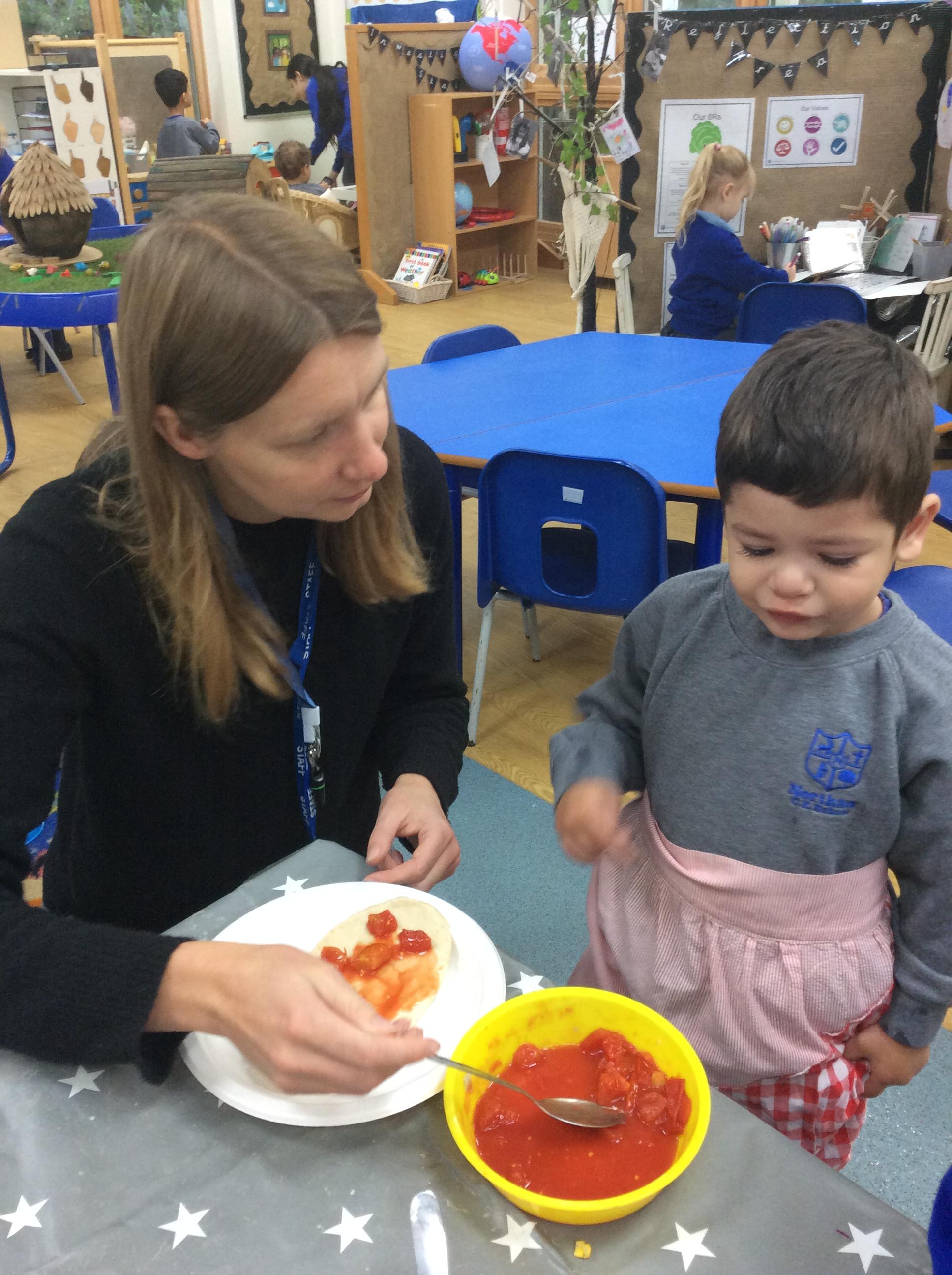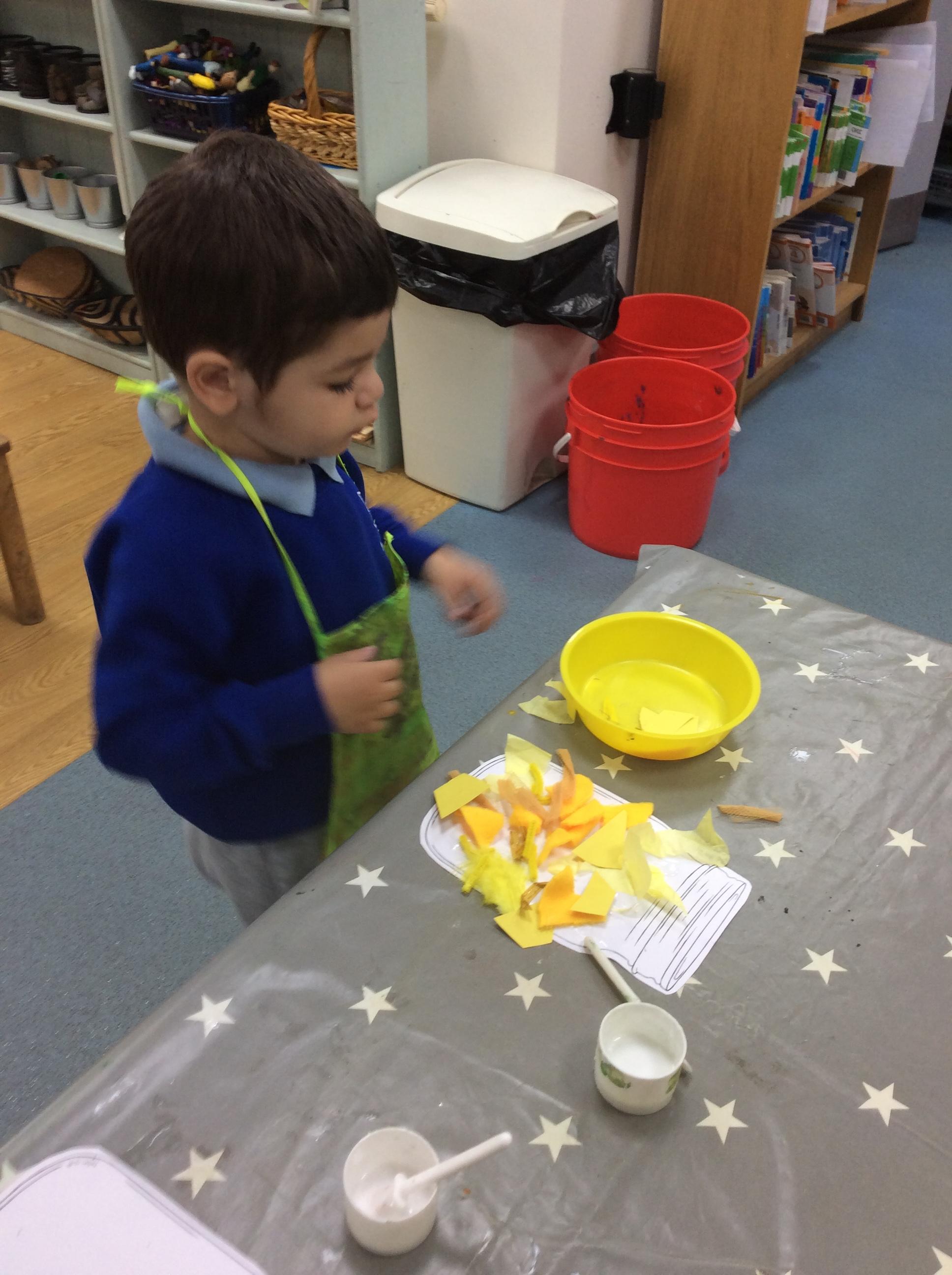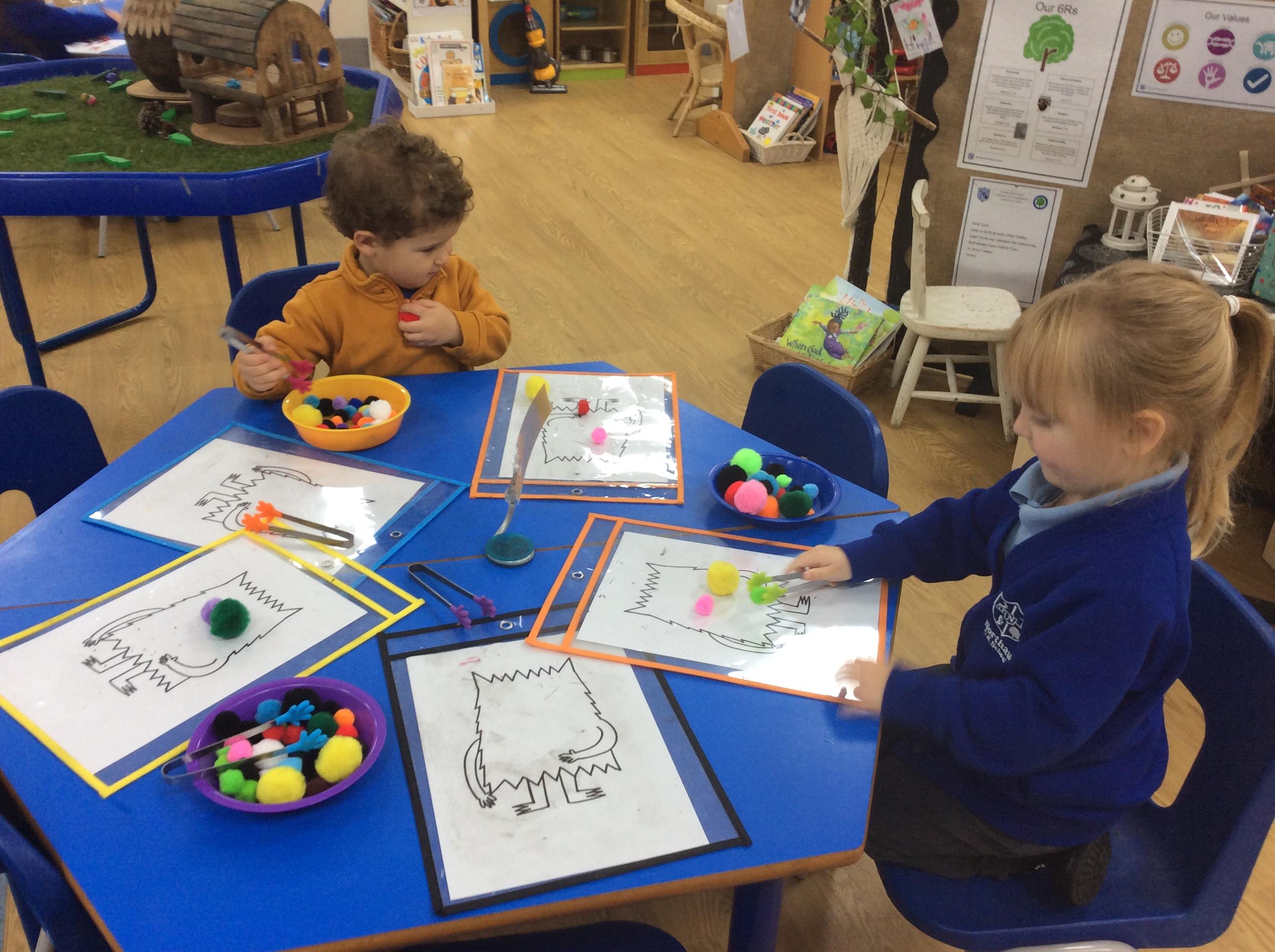 This week we have been learning about the Colour Monster. We have talked about our feeling and emotions. We have taken part in a range of activities to do with this book. On Wednesday we made pitta pizzas as we agreed this made us happy. We also made feeling bottles which we can take home and shake when we are feeling angry and it can help to calm us down. Also this week we watched a science experiment where all the skittles got mixed up, just like the colour monster book. Another busy week in Acorns.