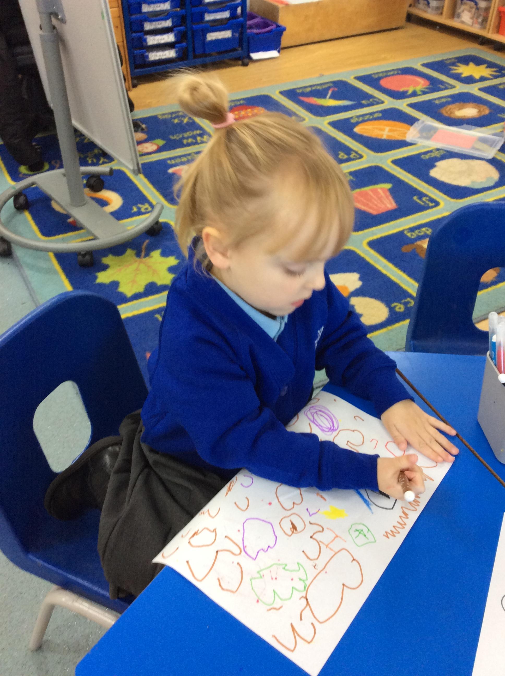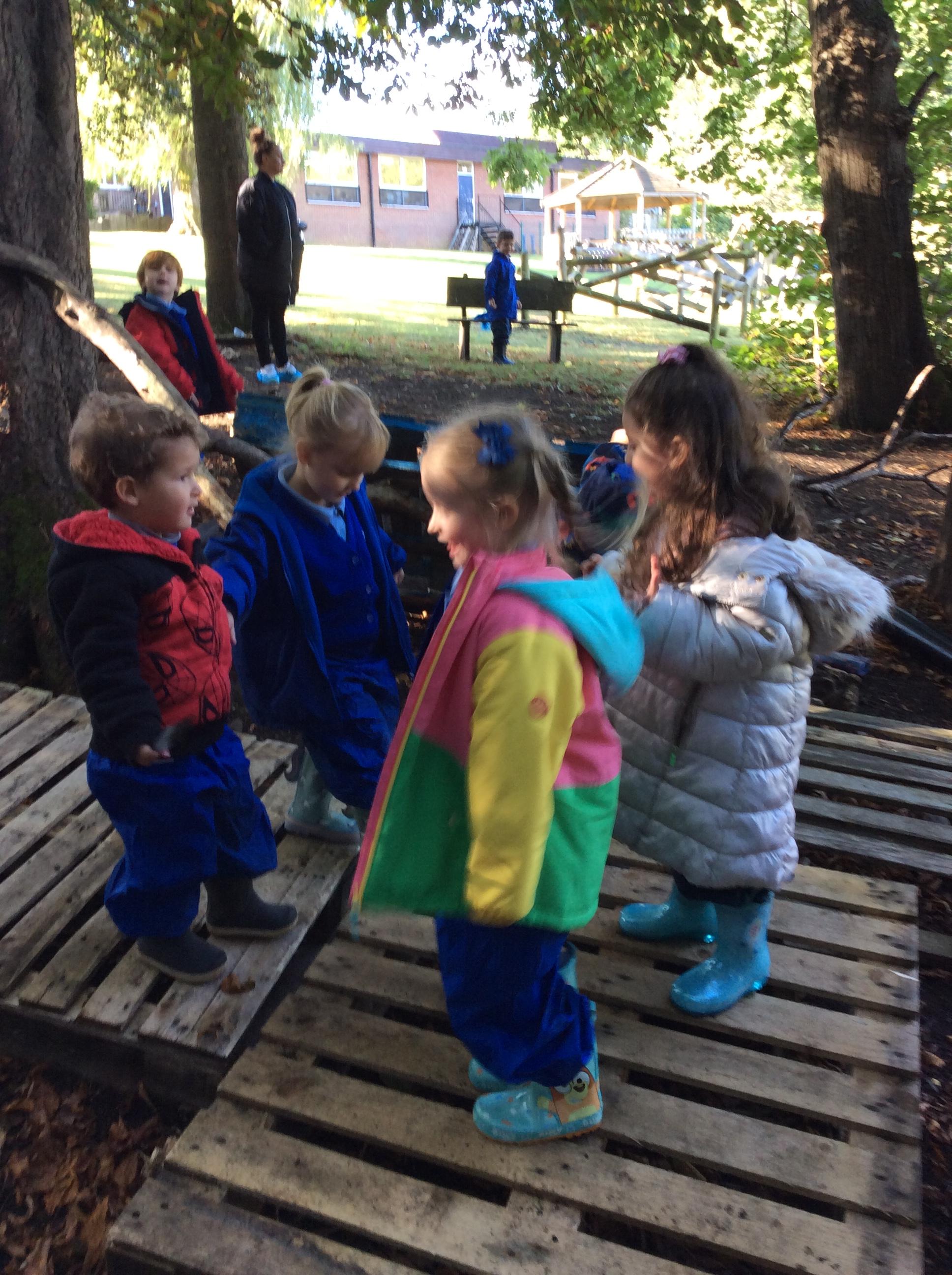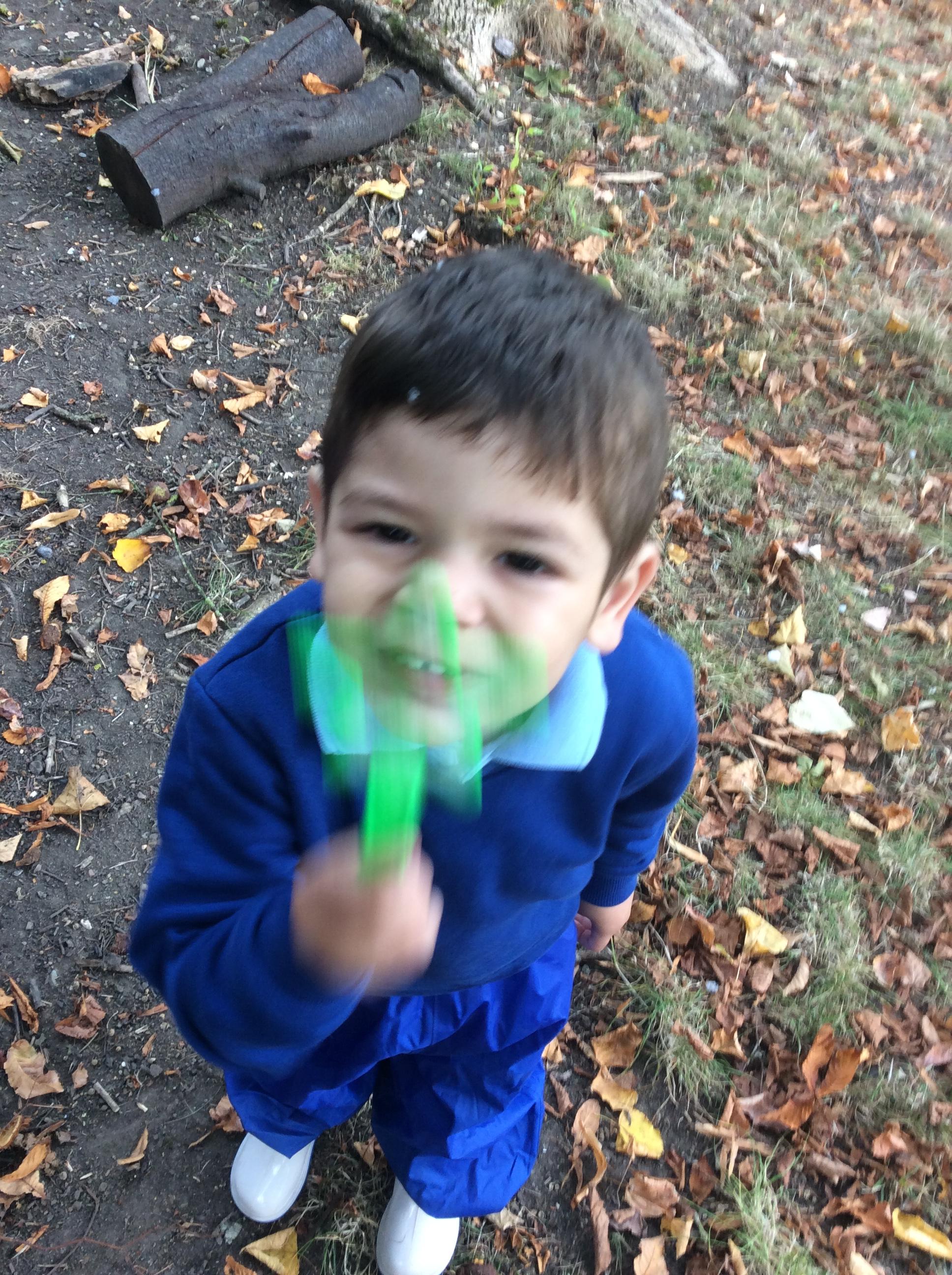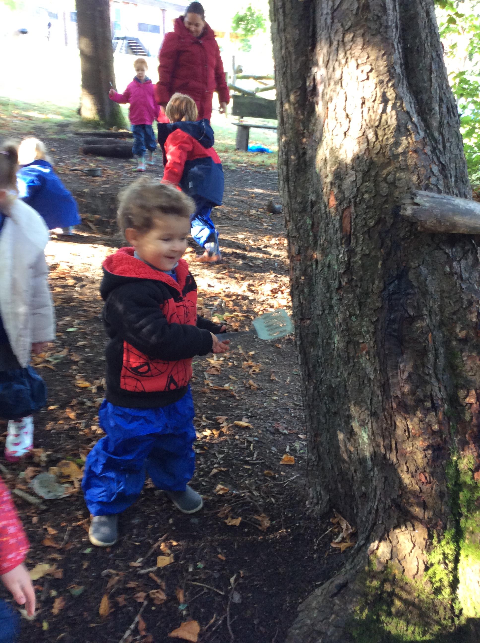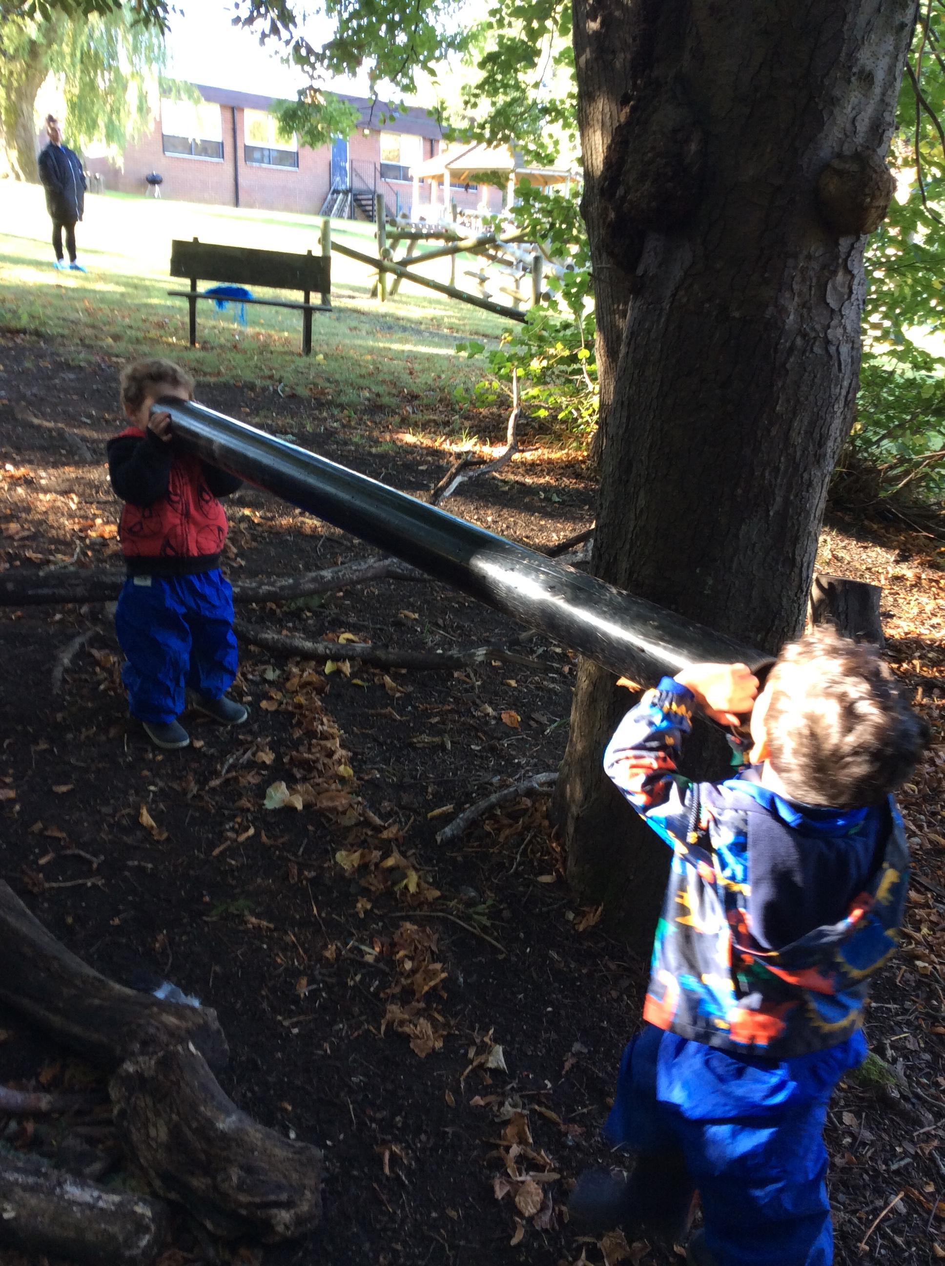 Today we had our first forest session. The children enjoyed exploring the forest. We talked about the rules including how we are allowed to pick up sticks and logs but "bigger than you carry with two, bigger than me carry with three". The children decided to make a campfire and this included picking up lots of sticks and logs. The children worked really well as a team to do this.
