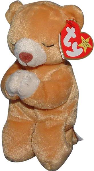 This is our Prayer Bear, and infants take turns giving him a home where she helps them develop the habit of praying, words that you say to God giving thanks or asking for help.