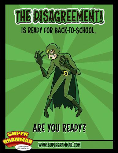 Every hero knows that sentences work better with teamwork, but this obnoxious character begs to differ. His name is the Disagreement, and as a super sour member of the Sabotage Squad, he much prefers conflict, contradiction, and confusion in your sentences. And that’s why the Disagreement is constantly working to break up the teamwork between the subject and verb of a sentence.