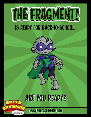 The sentence Fragment is a weak and crumbly bad guy, and as a member of the Sabotage Squad, there’s nothing that he enjoys more than breaking up the strength and stability of your sentences. The Fragment does this by fragmenting your sentences so that they’re not complete.